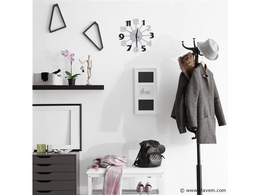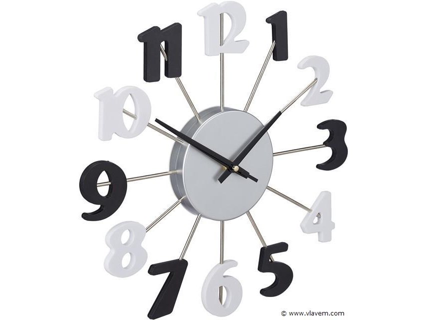 Design wandklok - Ø 35 cm - open design - met secondewijzer - zwart-wit-retouren van Relaxdays