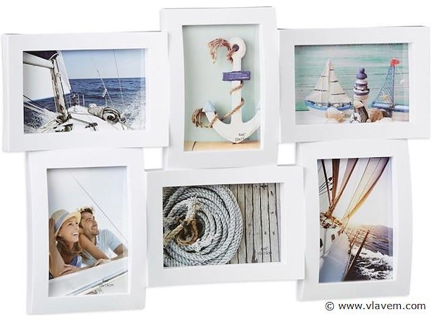 Fotolijst - 6 foto’s - 3D-look - 10x15 cm - collagelijst - wit- Nieuw