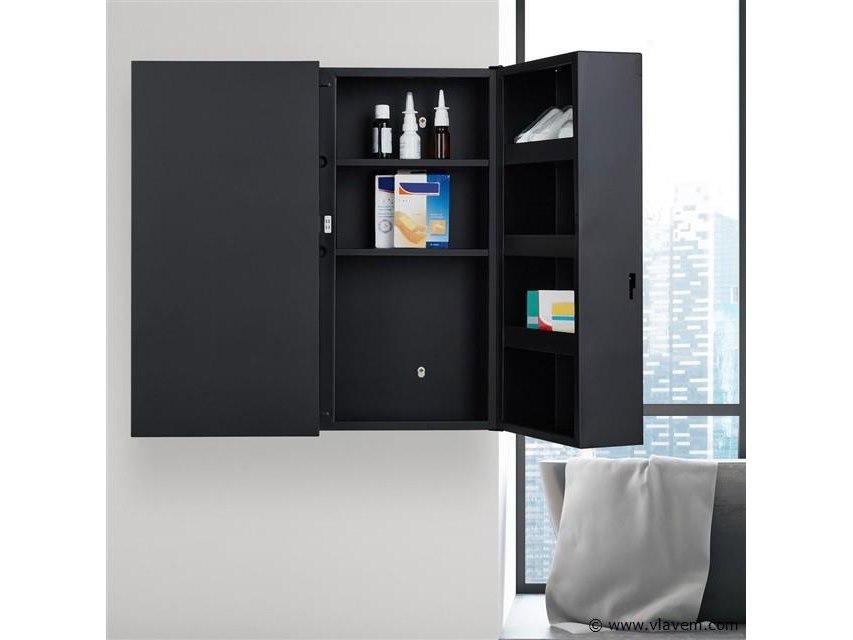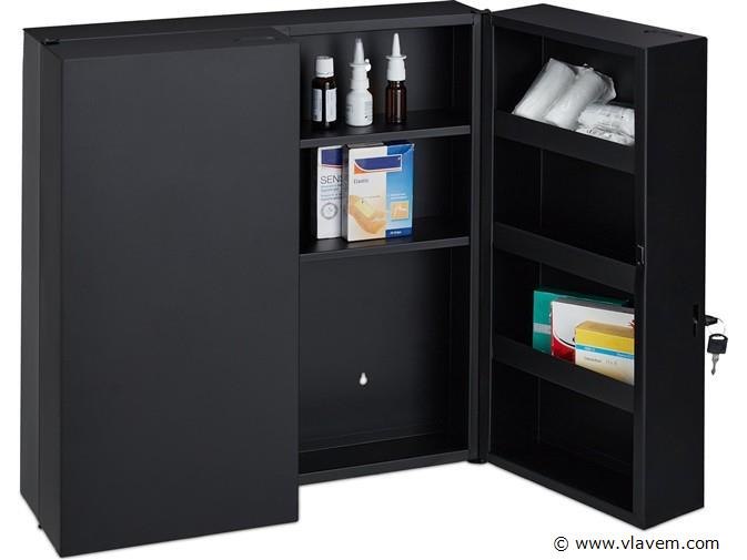 Medicijnkast XXL - 2 deuren - staal - 11 vakken - afsluitbaar - 53 x 52,5 x 19,5 cm - zwart-Nieuw in doos-retouren van relaxdays