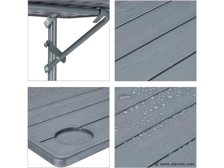 Balkontafel hangend - inklapbaar - hoogte verstelbaar (3 hoogtes) - met 2 bekerhouders-nieuw in doos-retouren van relaxdays