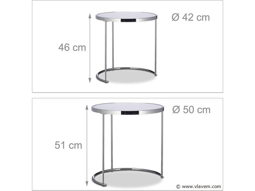 Design salontafel rond - set van 2 - 2 groottes - melkglas - metaal - woonkamer - zilver-nieuw in doos-retouren van relaxdays