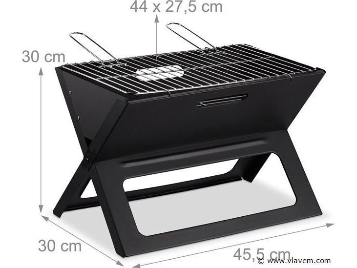 Draagbare en herbruikbare barbecue-ideaal op campings -festivals-of balkon-Barbecue zwart 46x30x30 cm-retouren van relaxdays