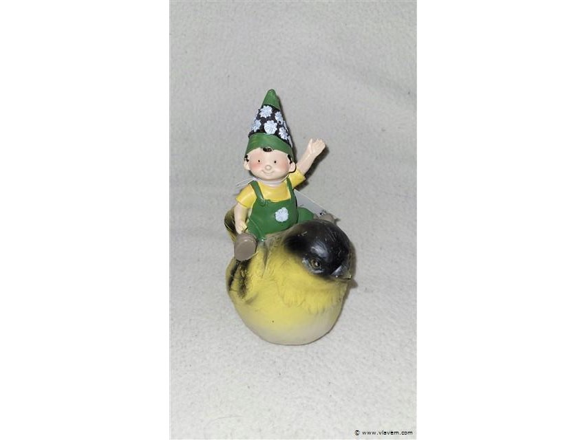 Decoratief Tuinfiguur WELCOME 7,5x7,5x14 cm Egeltje en vogel met kabouter set is 2 stuks
