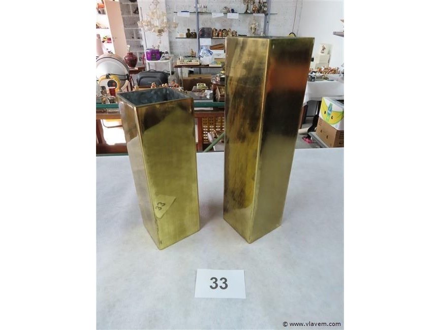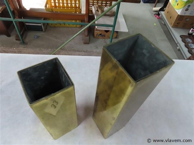 Koperen vierkante vazen h24 en h31cm