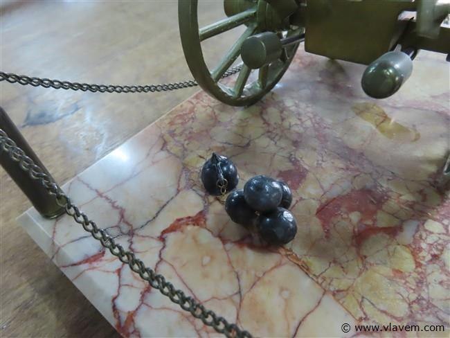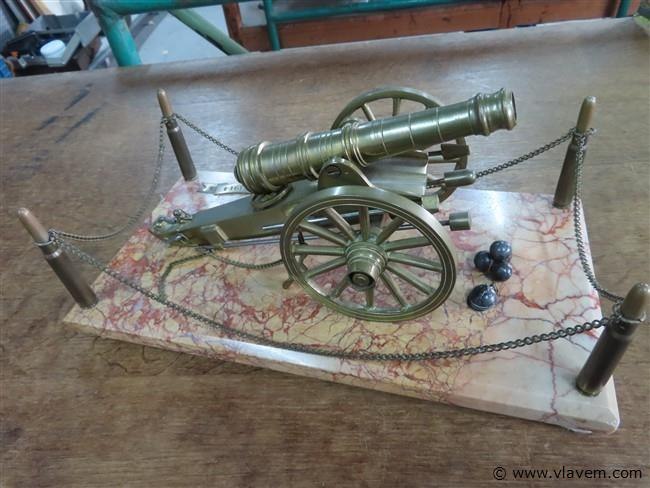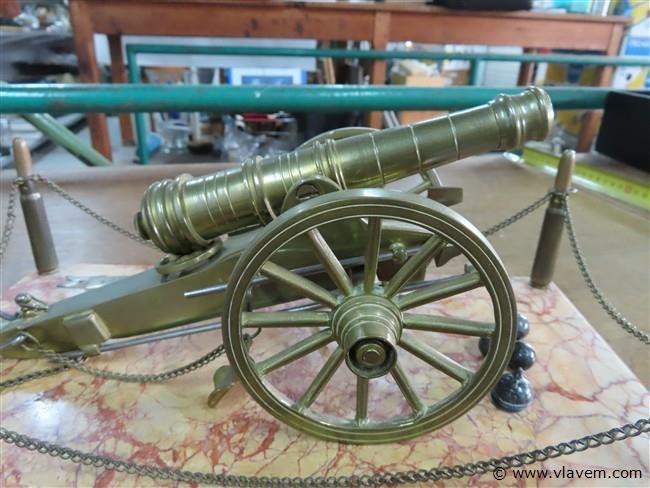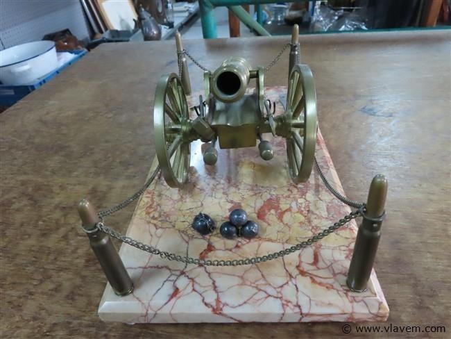 Bronzen kanon op marmeren basis, 32x17cm, h 15cm