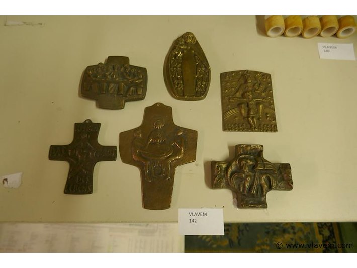Muurplaten in massief brons, plm 6 stuks