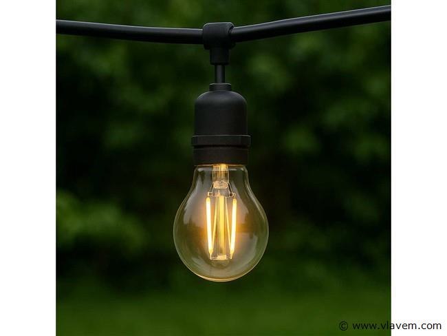 40 x A60 LED filamentlamp van 6W biedt een warme- decoratieve lichtuitstraling en beschikt over een dimbare functie- ideaal voor sfeerverlichting binnenshuis- De lamp produceert 500 lumen met een kleurtemperatuur van 2700K- wat zorgt voor een gezellige en aangename sfeer- Dankzij de 320° stralingshoek- een levensduur van 30-000 uur en een IP20-beschermingsgraad is deze lamp geschikt voor alle binnenruimtes- De E27-fitting- de efficiënte LED-technologie en het glazen ontwerp maken de lamp compatibel met standaard prikkabels en diverse armaturen-
