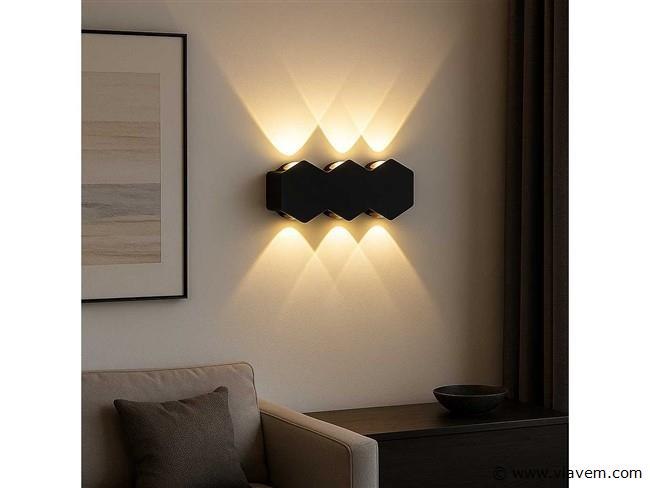 8 x Bidirectionele LED wandlamp 6W Up/Down - Waterdicht (IP54) - 3500K (Warm wit) - Artikelnummer: SW-51-3 - Zwart - COB LED - 500 Lumen - Afmetingen: 155 x 80 x 35 mm - Aluminium - Voltage: 220-240V (50-60Hz) - Levensduur: 30-000 uur - Inclusief montageset - Inclusief lamp - Geschikt voor gebruik binnen en buiten