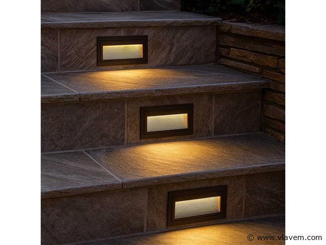 8 x LED trapverlichting 6W (LY05) – ModelRechthoekige inbouw – Vermogen: 6W – LED-type: COB – Lichtstroom: 540 lumen – Kleurtemperatuur: 3000K (warm wit) – Afmetingen: 65 x 210 x 60 mm – Hoogwaardig aluminium – Stijlvolle antraciet afwerking – Levensduur: 30-000 uurEures – Spanning: 85-265V (50/60Hz) – Beschermingsgraad: IP65 (volledig stofdicht en beschermd tegen waterstralen) – Geschikt voor gebruik binnen en buitenshuis – Compact- discreet en stijlvol – Inclusief lichtbron – InstInbouw met meegeleverde montageset – Ideaal voor het sublimeren en beveiligen van uw trappen- paden en terrassen-