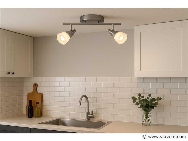 2 x LED plafondlamp 2 spots model DI03 – Maximaal vermogen 2 x 5W –Kleurtemperatuur 4000K (neutraal wit) – Lichtstroom: 650 lumen – Afmetingen: 305 x 50 mm – Beschermingsgraad: IP20 – Kleur: Zilver – Spanning: 220-240V (50/60 Hz) – Inclusief lampen- Ideaal voor moderne binnenverlichting in woonkamersNs- slaapkamers- kantoren en gangen-