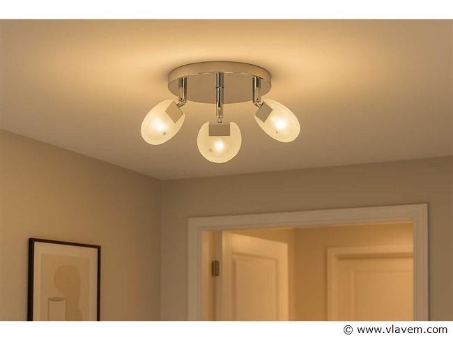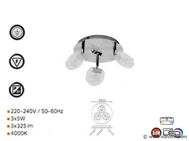 6 x LED plafondlamp aMet 3 spots model HL7160L – Maximaal vermogen 3 x 5W – Kleurtemperatuur 4000K (neutraal wit) – Lichtstroom: 975 lumen – Diameter: Ø 210 mm – Beschermingsgraad: IP20 – Kleur: Zilver – Spanning: 220-240V (50/60 Hz) – Inclusief lampen- EenIdeale keuze voor stijlvolle- moderne en efficiënte binnenverlichting-