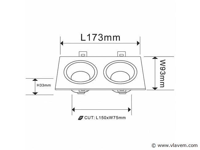 20 x Inbouwspot (EP-2) - Richtbaar - GU10 - Zwart - Inbouwspot (EP-2) - Verstelbare binnenring - Kleur van het product: Zwart - Geschikt voorBinnen - Beschermingsgraad: IP20 - Afmetingen: L 173 x B 93 x H 33 mm - Inbouwafmetingen: L 150 x B 75 mm - Aansluiting: GU10 - Garantie: 2 jaar - Antireflectie - Compatibel met MR16-GU10 - Lampen niet inbegrepen