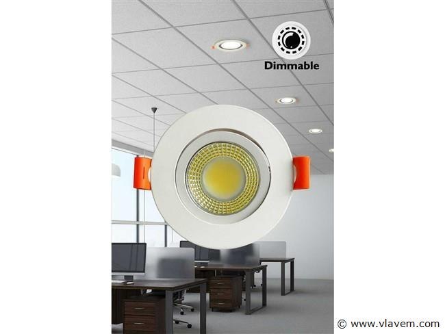 25 x Inbouw LED-spot – Vermogen: 7W – TechnologieCOB – Variabele (dimbare) en draaibare intensiteit – Kleurtemperatuur: 6500K (koud wit) – Lichtstroom: 630 lumen – IRC 80 – Beamhoek: 40° – Ronde vorm – Kleur: wit – Materiaal: metaal – Afmetingen: Ø 88 x 50 mm – Diameter van deCast: Ø 70 mm – Voltage: 220-240V (50/60Hz) – Beschermingsgraad: IP20 – Inclusief lichtbron – Levensduur: 30-000 uur – Perfect geschikt voor moderne en functionele binnenverlichting-