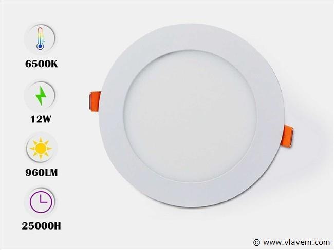 Led-paneel – rond inbouw – 12w – 6500k – koud wit (x20)