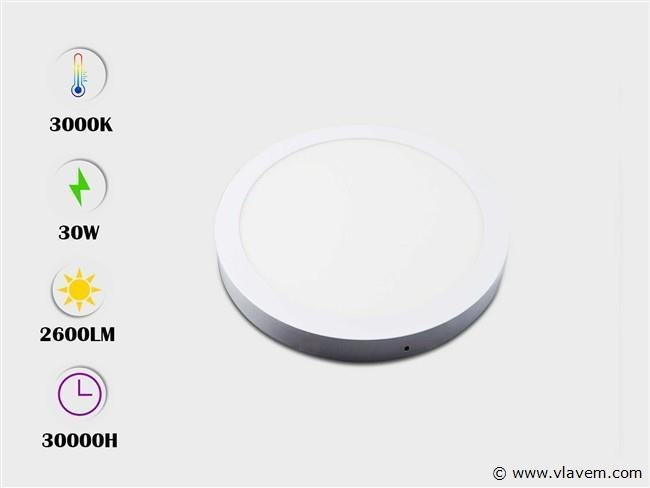 10 x LED-oppervlaktepanelen – Ronde vorm – Vermogen 30W – LED-type: SMD – Kleurtemperatuur 3000K (warm wit) – Lichtstroom: ˜ 2400 lumen – Afmetingen: 280 x 28 mm – Spanning: 220-240V (50/60 Hz) – Inclusief stuurprogramma's – Bescherming: IP20 – Levensduur: 30-000 uur – Beamhoek: 120° – Inclusief montagekit – Ideaal voor kantoren- winkels en binnenruimtes-