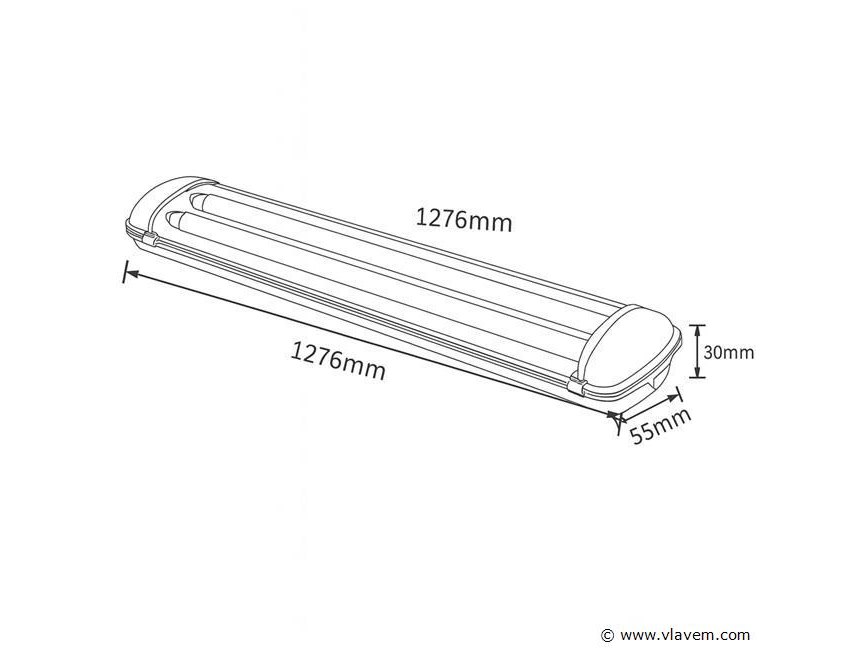 24 x Dual TL armatuur 120cm – IP65 Waterdicht – Dubbel frame voor fluorescen buizenTs – Lengte: 120 cm – Compatibel met standaard TL-buizen (niet inbegrepen) – Beschermingsgraad: IP65 (waterdicht. volledig beschermd tegen stof en waterstralen) – Geschikt voor gebruik binnen en buiten – Afmetingen: 1276 x 86 x 55 mm – Wordt geleverd met montageset voor eenvoudige installatie – Ideaal voor omgevingen waar betrouwbare verlichting vereist is.