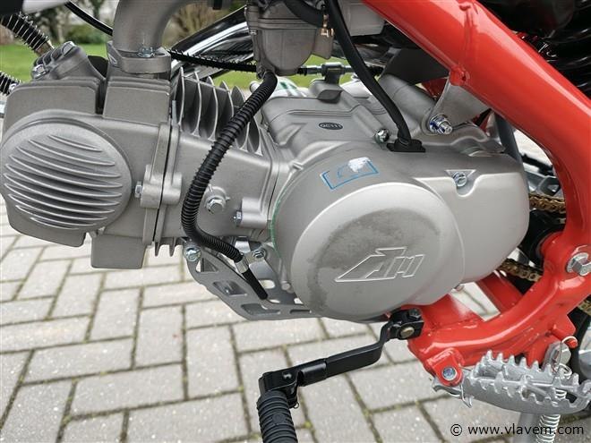 Voorzien van 150 cc motor; 4 takt; kick start; olie gekoeld; bandenmaat voor 19” inch achter 16” inch; hydraulische vering voor en achter; schijfremmen; ongebruikt in doos (transport afmetingen 150x40x75 cm) OPGELET: mag niet op de openbare weg, kan niet ingeschreven worden. Geen doc. aanwezig
