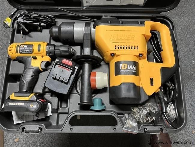 Boorhamer en accu schroevendraaier in koffer