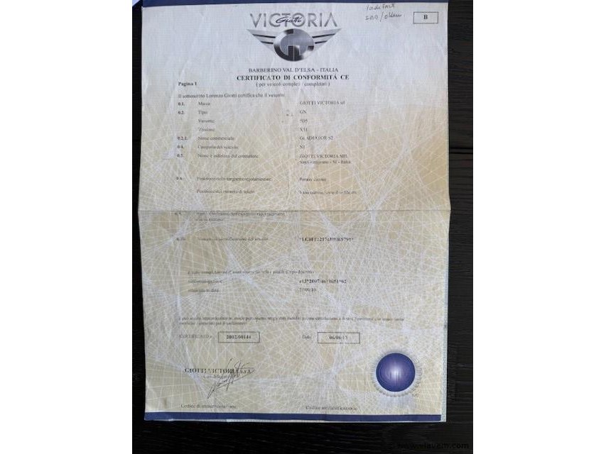 Fabr. GIOTTI VICTORIA, type GLADIATOR S2, eerste inschrijving 20/12/2013, km-stand plm. 51.867, benzine, euro 5, chassisnr. LGHT12174B9J65791, vv. airco, elektr. ramen, radio CD. Alle afdekzeilen rondom zijn aanwezig. Koeling is getest en werkt. Alle doc. aanwezig en 1 sleutel aanwezig