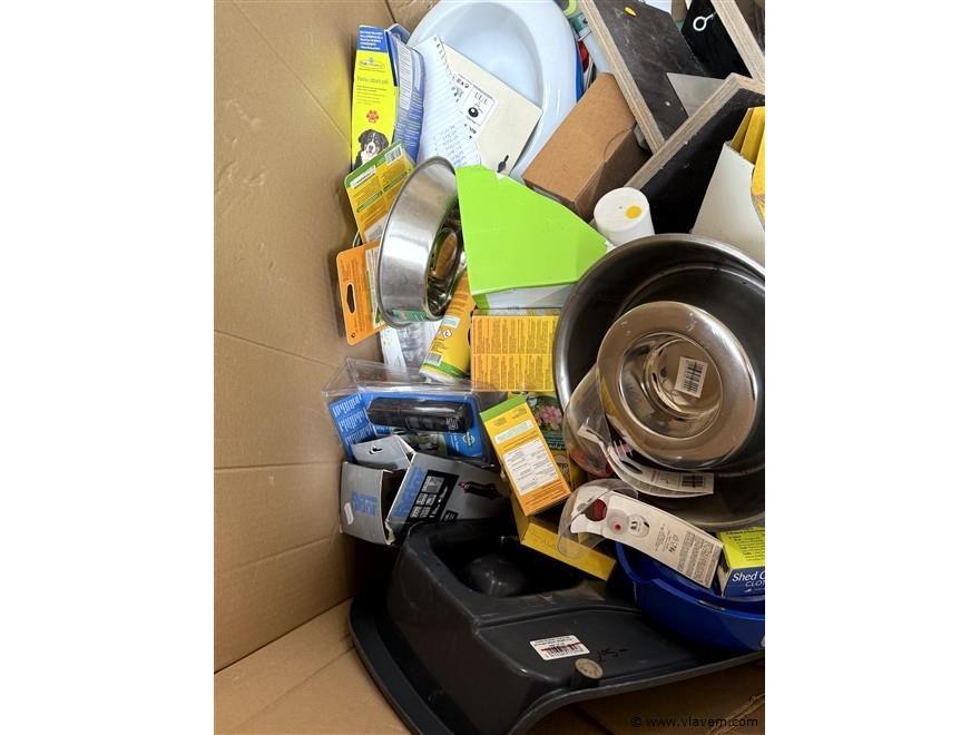 Doos, inh. partij div. huisdieren toebehoren, tuinproducten enz.