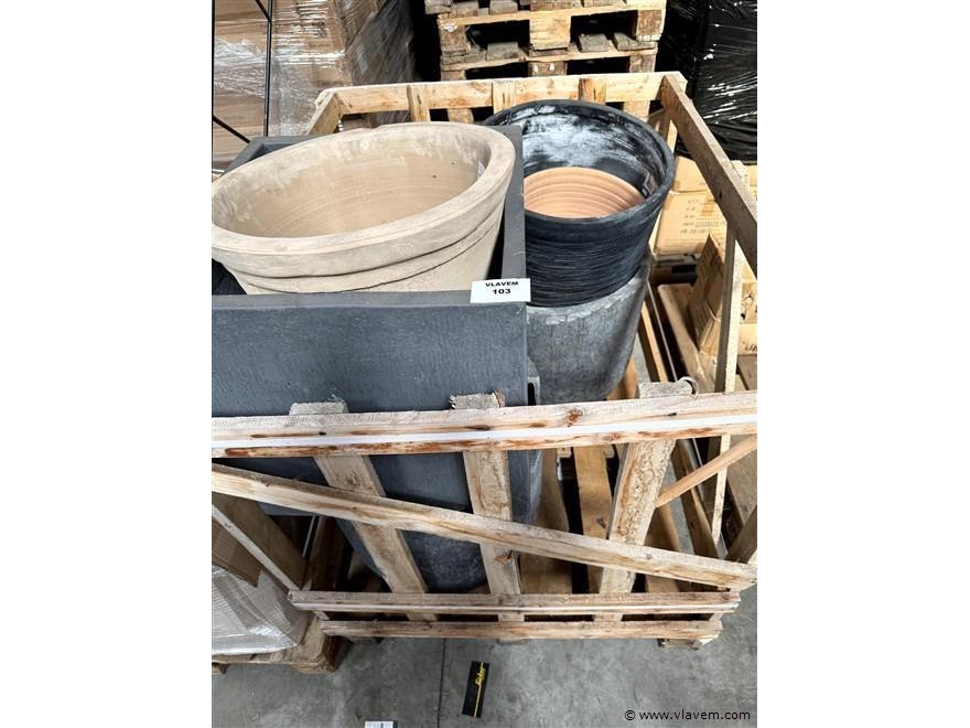 Partij div. bloembakken in stenen en kunststof uitvoering.