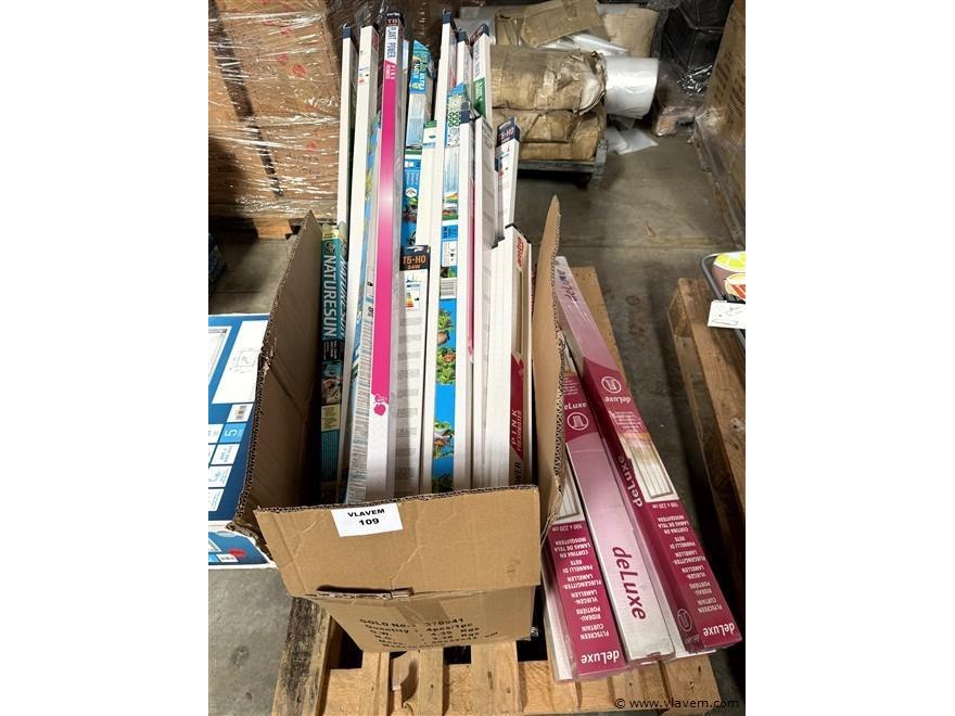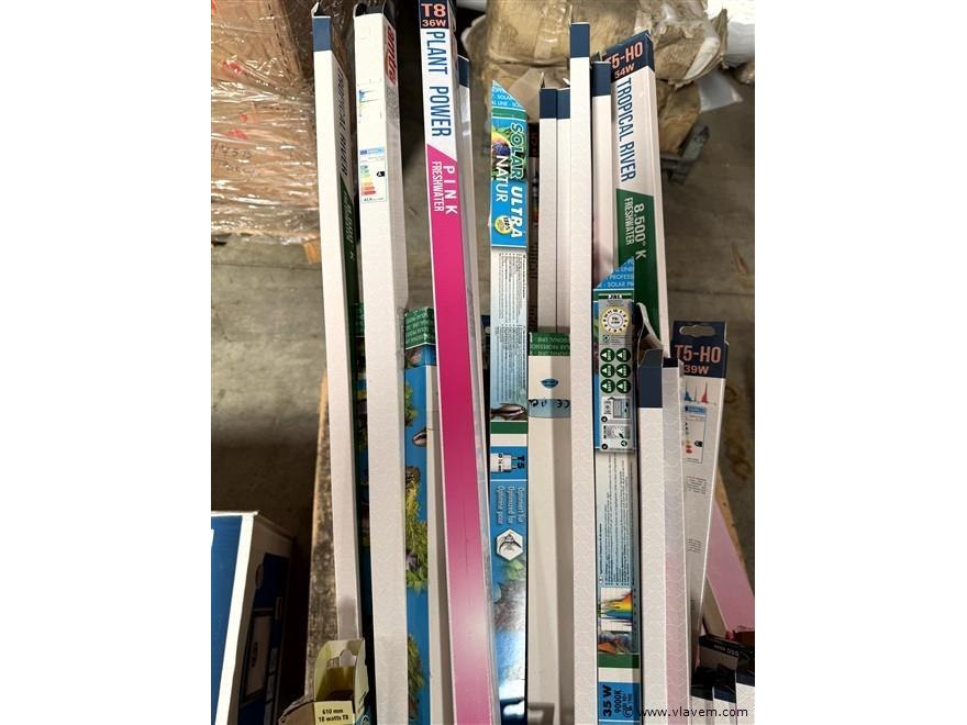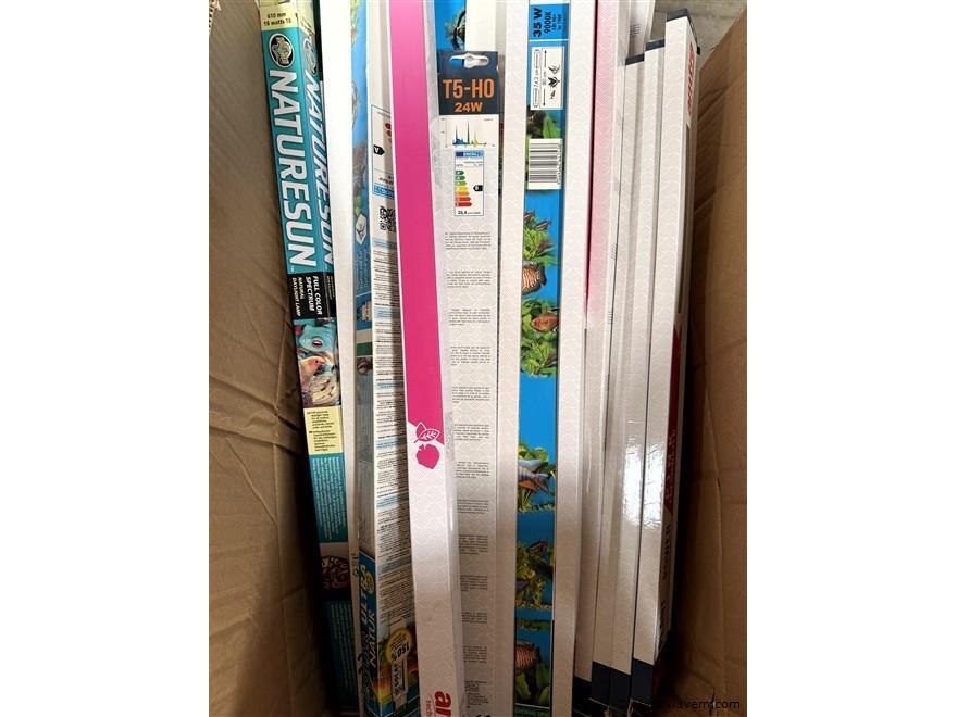 Doos, inh. div. aquarium toebehoren en enige vliegen-lamellen