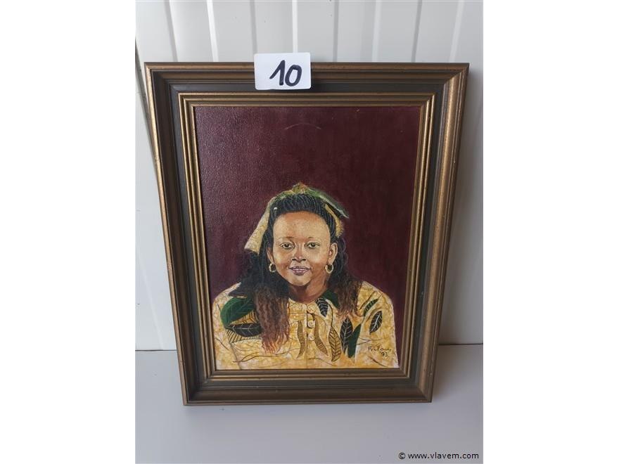Olie op doek. Afrikaanse vrouw. Ingelijst en gesigneerd in 1993.