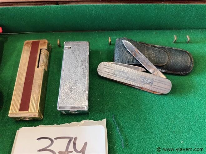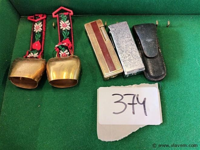 2 bellen, 2 vintage aanstekers en 1 zakmes.