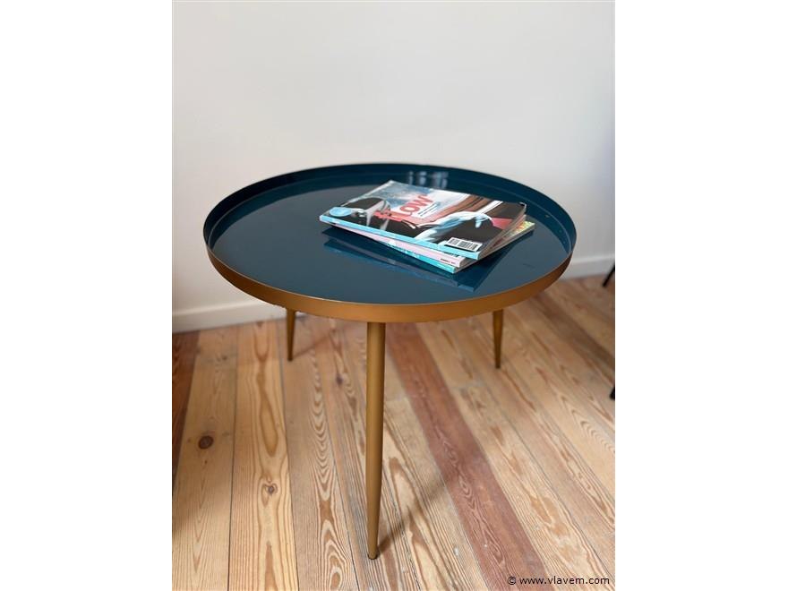 Bijzettafel van blauw en goudkleurig metaal H51 Ø61 cm - merk Afle