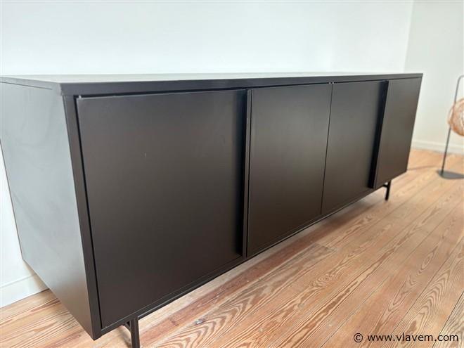 Lage zwarte buffetkast met 4 deuren L150 H63 D45 cm