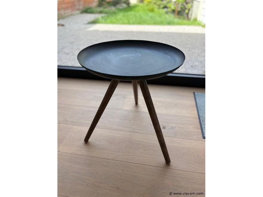 Kleine metalen ronde bijzettafel in industriële stijl / plantenstandaard H50 Ø45 cm