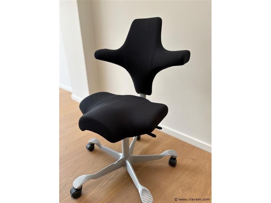 HÅG bureaustoel, een ergonomische zadelstoel ontworpen door Flokk voor actief zitten en werken aan zit-sta bureaus.