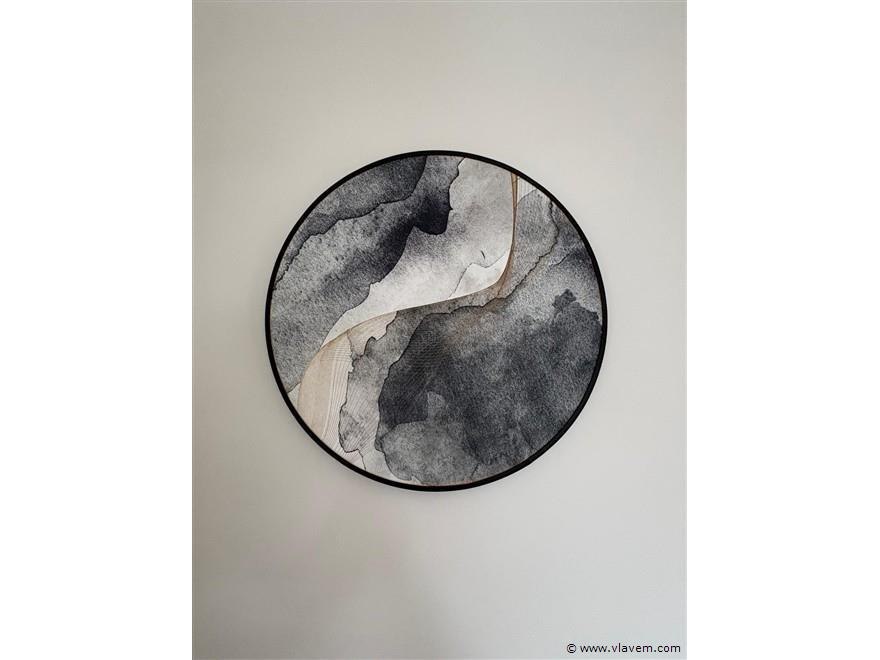 Rond schilderij met abstracte zwart-wit patronen is een interieurdecoratie-item in de stijl van modern Scandinavisch design Ø 60 cm