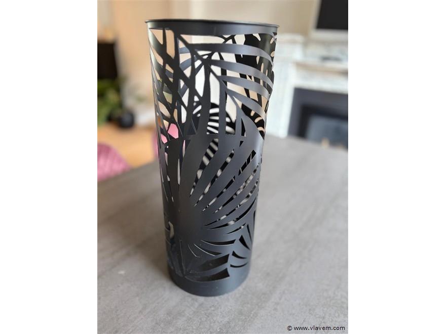Van zwart opengewerkt metaal met blaadjesmotief L23 H55 D23 cm