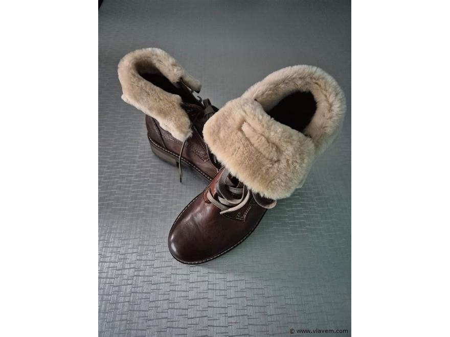 1 paar manas winterlaars met pels bruin leder, maat 39