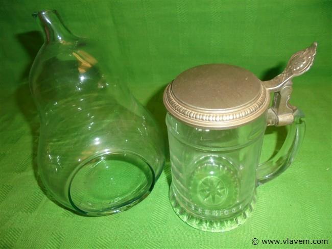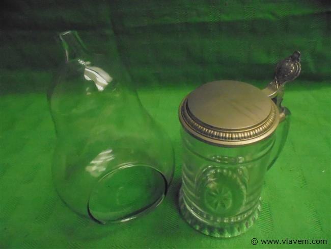 Bierkruik met tinnen deksel+ glazen peer voor plantjes