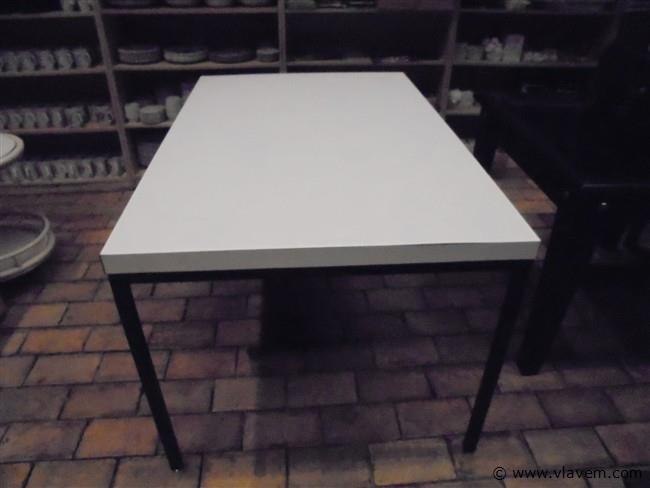 Stevige formica tafel met metalen poten1m40cm op 90cm en 76cm hoog