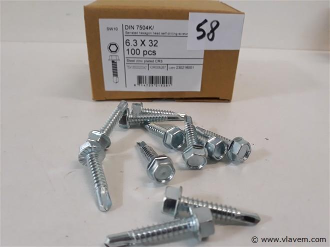 1 x boorschroef zeskant 6,3x32 mm 100 stuks