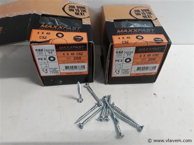 2 x Houtschroeven spaanplaatschroeven wit verzinkt 4x40mm kruiskop PZ2 200 stuks Maxxfast
