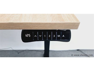 Loctek Motion ET223 onderstel (in doos) in metaal kleur Zwart, max. Load Capacity 125kg, 3 fase, 2 motoren, hoogte verstelling van 580 - 1230 mm met veiligheid, blad 1600 x 800 in melamine kleur Robson Eik, elektronische bediening met hoogte weergave en memory, bevestigingsmateriaal incl.
