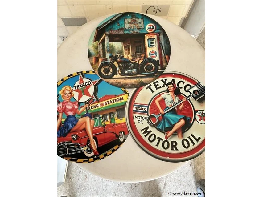 Ronde metalen retrolook sierborden diameter ± 20cm
