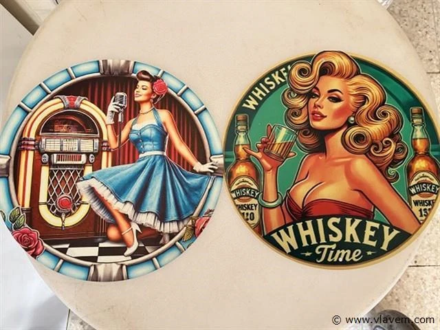 Ronde metalen retrolook sierborden diameter ± 20cm