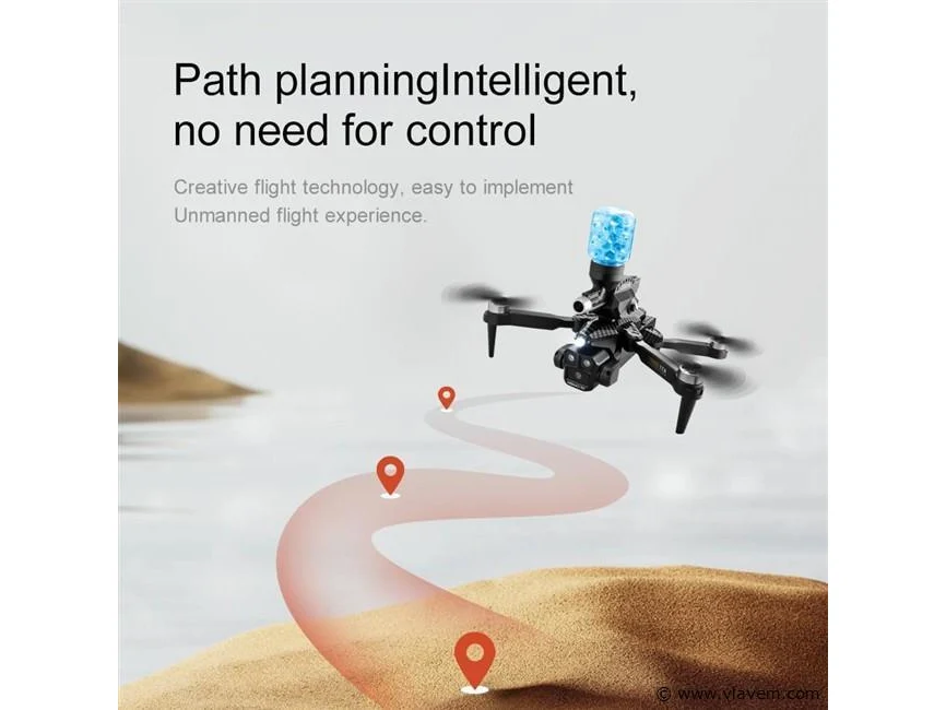 RTF (Ready to Fly) De Schiet Drone 8K is direct klaar voor gebruik. Het enige wat nog nodig is, zijn batterijen voor de zender. Ontwerp en bouw Met een gewicht van slechts 178 gram biedt de Schiet Drone een lichtgewicht ontwerp dat duurzaamheid combineert met draagbaarheid. Deze drone, nauwkeurig vervaardigd in China, heeft een slank en modern frame waarin de nieuwste technologie is verwerkt, perfect voor een spannende vliegervaring. Luchtfotografie De Schiet Drone legt indrukwekkende luchtbeelden vast dankzij de 4K-videoresolutie (4096x2160). De opnameopties in zowel 1080p HD als 4K HD bieden een breed scala aan mogelijkheden, of je nu het landschap vastlegt of luchtavonturen beleeft. Waterbomlanceringsfunctie Een opvallend kenmerk van de Schiet Drone is de unieke waterbomlanceerfunctie. Deze wereldprimeur in drone-speelgoed biedt zowel single-shot- als continu-shot-modus, waarmee gebruikers op precieze wijze luchtgevechten met waterbommen kunnen voeren. Dit voegt een extra laag spanning en interactie toe aan buitenspeelplezier. Vluchtprestaties Met een maximale windsnelheidsweerstand van minder dan 10 km/u en een vliegtijd van 15 minuten biedt de Schiet Drone een stabiele en plezierige vliegervaring. De drone is uitgerust met een 6-assige gyroscoop en een volledig omnidirectioneel detectiesysteem voor soepele en responsieve besturing. Connectiviteit en controle De Schiet Drone biedt veelzijdige bedieningsmogelijkheden, waaronder bediening via een app, afstandsbediening en Wi-Fi-verbinding. De waterbomlanceerfunctie, borstelloze motoren en optische stroompositionering dragen bij aan een dynamische en boeiende vliegervaring. Camerastabilisatie en beeldkwaliteit Voor vloeiende en heldere beelden is de drone uitgerust met een gimbal-stabilisator. De 1/6,0-inch sensor met meer dan 6 miljoen pixels zorgt voor luchtfotografie van hoge kwaliteit. De elektrische lens in combinatie met de 4K HD-opslag levert indrukwekkende beeldresultaten. Specificaties: GPS: Ja Maximale videokwaliteit: 4K (4096x2160 pixels) Maximale windsnelheidsweerstand: