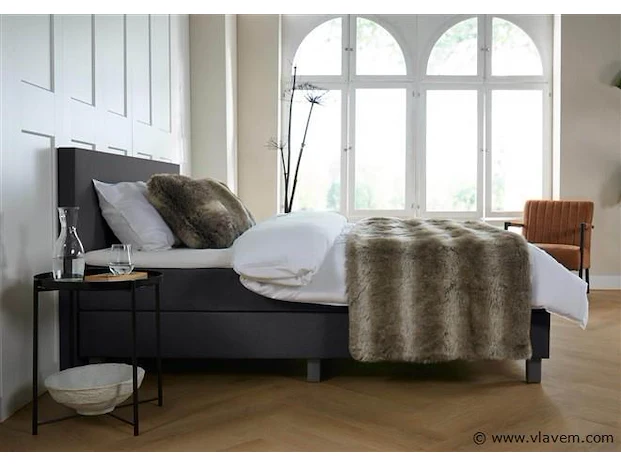 15651 Vlakke boxspring Florence. Afmeting 140 x 200, Zwart.Het hoofdbord is even breed als het bed (voorbeeld 180x100x8cm) de onderboxen zijn hard. Het matras bestaat uit 1 geheel (140x200/160x200/180x200) het matras is 7zone pocket geveerd. de topper is ca 5cm dik en is van het materiaal comfort schuim. de pootjes zijn grijs vierkant en 12 cm hoog.