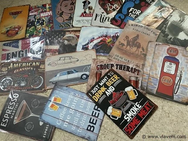 Partij 20 stuks retrolook metalen sierborden 30x20cm elk bord - verzending mogelijk kijk bij veiling info