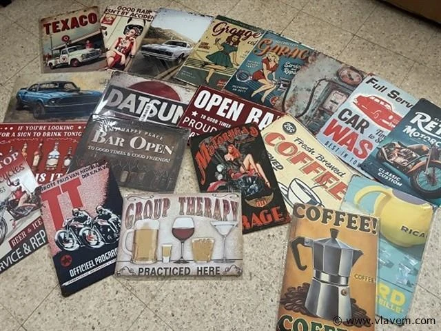 Partij 20 stuks retrolook metalen sierborden 30x20cm elk bord - verzending mogelijk kijk bij veiling info
