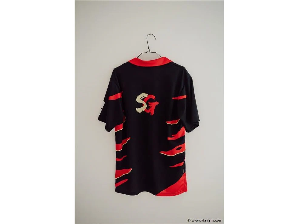 Dart Shirt zwart/rood. Sybren Gijbels, Match Worn & (logo is handtekening). Semi-professioneel darter / WDF titels : 2024 Lakitelek Darts Masters en Budapest Classic / WDF West Europe Open ranking : 7