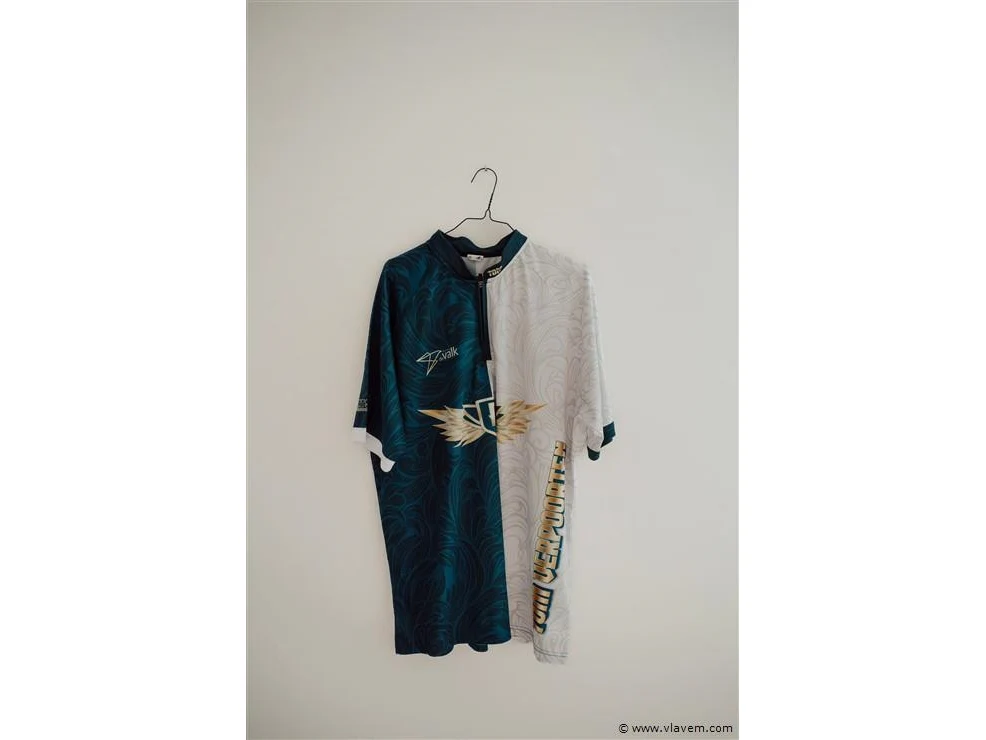 Dart Shirt wit/groen The Falcons. Tom Verpoorten, Match Worn & Gesigneerd Shirt. Belgische Darter / ADC Lowland Spring Series Pub Qualifier #4 (2025)