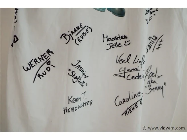 Roel Vanderstukken, Yanni Bourgignon, Caroline Maes, Koet Tombuyzer (Headwriter), Maarten Cop, Werner De Smedt, Jasmijn Van Hoof, Jacky Lafon, Jools Jatta Janssens, Bjarne De Volder, Jan Van den Bossche, Jo Hens, Jaak Van Assche, Tine Roggeman, Margot Hallemans, Amine Boujouh. gesigneerd door de volledige cast van Familie