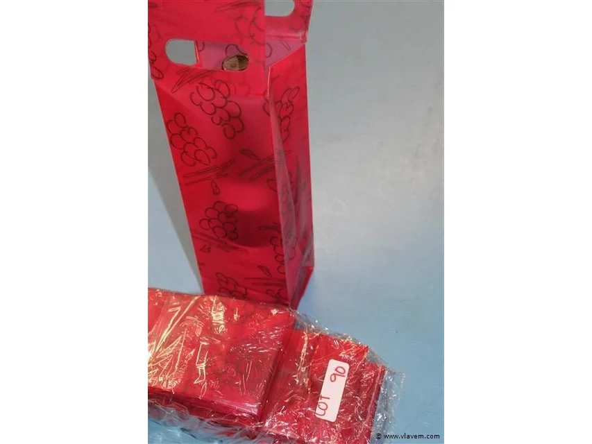 50 (2 x 25) stevige plastiek geschenkzak voor 1 wijnfles kleur ; rood met druiven motief